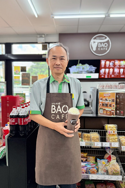 หลังเกษียณอายุจากงานประจำ คุณลุงอุ๊ได้พักผ่อนอยู่บ้านเพียงช่วงสั้น ๆ ก่อนจะรู้สึกว่าใจยัง “อยากทำอะไรสักอย่าง” วันหนึ่งระหว่างรอกาแฟที่ร้านบาว คาเฟ่ (BAO CAFÉ) ที่ซีเจ มอร์ จึงลองถามเล่น ๆ ว่า “รับคนชงกาแฟไหม” คำถามนั้นกลายเป็นจุดเริ่มต้นของการกลับมาทำงานอีกครั้งในวัย 61 ปี ณ ซีเจ มอร์ สาขาหมู่บ้านศิรินคร พหลโยธิน 54/1 กรุงเทพฯ