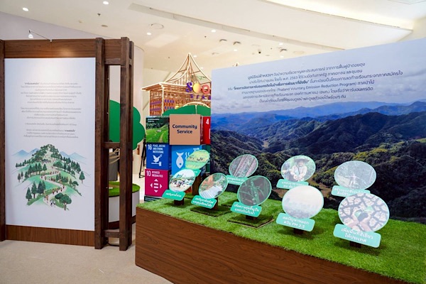 นอกจากนี้ ในนิทรรศการจะนำเสนอตัวอย่างของการนำประสบการณ์และความเชี่ยวชาญที่สั่งสมจนเกิดเป็นองค์ความรู้ และการต่อยอดพระราชปณิธาน “ปลูกป่า ปลูกคน” ซึ่งเป็นรากฐานการดำเนินงานของมูลนิธิแม่ฟ้าหลวงฯ และโครงการพัฒนาดอยตุง (พื้นที่ทรงงาน)ฯ ผ่าน “โครงการจัดการคาร์บอนเครดิตในป่าเพื่อการพัฒนาที่ยั่งยืน” โดยโครงการนี้ ใช้กลไก “คาร์บอนเครดิต”* เป็นเครื่องมือทางเศรษฐศาสตร์ในการเชื่อมชุมชนต้นน้ำที่อาศัยอยู่กับป่าชุมชน และภาคเอกชนที่ให้ความสำคัญกับการลดปริมาณการปล่อยก๊าซคาร์บอนไดออกไซด์ เพื่อให้เกิด Total Well-being กับทุกภาคส่วน โดยป่าได้รับการอนุรักษ์และฟื้นฟูให้ความหลากหลายทางชีวภาพกลับคืน ชุมชนได้รับการพัฒนาและปรับปรุงคุณภาพชีวิต และองค์กรธุรกิจได้บรรลุเป้าหมายการลดการปล่อยก๊าซเรือนกระจกและจากการปลูกป่ามากว่า 30 ปี บนพื้นที่ดอยตุง นับตั้งแต่สมเด็จพระศรีนครินทราบรมราชชนนี ทรงพลิกฟื้นพื้นที่เขาหัวโล้น และพื้นที่ปลูกฝิ่นดั้งเดิมให้กลายเป็นผืนป่า ความหลากหลายทางชีวภาพทั้งพืชและสัตว์ค่อยๆ กลับคืนมา พบพันธุ์ไม้ใหม่ของโลก รวมทั้งสัตว์เสี่ยงสูญพันธ์หลายชนิด ในอนาคต สามารถนำไปต่อยอดผ่านกลไกตลาดที่เรียกว่า “เครดิตความหลากหลายทางชีวภาพ (biodiversity credits) หรือ “ไบโอเครดิต” เพื่อเป็นกลไกในการรักษาความหลากหลายทางชีวภาพ สามารถซื้อขายได้ โดยมีลักษณะคล้ายกับการซื้อขายคาร์บอนเครดิตซึ่งปัจจุบันอยู่ในขั้นตอนการวิจัย แนวพระราชดำริในสมเด็จพระศรีนครินทราบรมราชชนนี เป็นต้นแบบการแก้ปัญหาอย่างยั่งยืน เป็นแนวทางสำคัญเพื่องานพัฒนาที่สอดคล้องกับบริบทของสังคมในปัจจุบัน สร้างประโยชน์และแรงบันดาลใจในการเป็นพลเมืองที่มีความรับผิดชอบต่อสังคมต่อไป