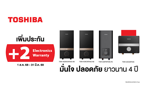 โตชิบามอบความคุ้มค่าสูงสุดให้กับลูกค้าด้วยโปรโมชั่นพิเศษสำหรับผู้ที่ซื้อตั้งแต่วันนี้ – 31 มีนาคม 2569 ด้วย การขยายระยะเวลารับประกันตัวเครื่องจาก 2 ปี เป็น 4 ปี ฮีตเตอร์รับประกัน 5 ปี สัมผัสความอุ่นใจในทุกการอาบ ด้วยเครื่องทำน้ำอุ่นโตชิบาเทคโนโลยีอัจฉริยะ SensTemp เพื่อทุกคนในบ้าน สอบถามรายละเอียดเพิ่มเติมได้ที่ www.facebook.com/ToshibaLifestyleThailand หรือ www.toshiba-lifestyle.com/th