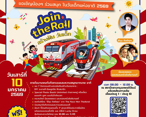นายสุเทพ พันธุ์เพ็ง กรรมการผู้อำนวยการใหญ่ บริษัท รถไฟฟ้า ร.ฟ.ท. จำกัด ผู้ให้บริการรถไฟฟ้าชานเมืองสายสีแดง เปิดเผยว่า รถไฟฟ้าชานเมืองสายสีแดง บูรณาการความร่วมมือกับ การรถไฟแห่งประเทศไทย และบริษัท เอสอาร์ที แอสเสท จำกัด จัดกิจกรรมสุดพิเศษ เนื่องในโอกาสวันเด็กแห่งชาติ ภายใต้แคมเปญ Join the Rail สร้างฝัน วันเด็ก ในวันเสาร์ที่ 10 มกราคม 2569 ตั้งแต่เวลา 08.00 – 12.00 น. ณ สถานีกลางกรุงเทพอภิวัฒน์ บริเวณโถงทางเดินเชื่อมประตู 1 – ประตู 10 โดยน้องๆทุกคนจะได้ร่วมสนุกกับกิจกรรมต่างๆภายในงาน ประกอบด้วย 7 ฐานกิจกรรมที่จะช่วยเสริมสร้างความรู้และจินตนาการ ซึ่งหากเข้าร่วมกิจกรรมครบทั้ง 7 ฐาน จะได้รับประกาศนียบัตรใส่กรอบทองสำหรับตั้งโต๊ะ พร้อมลุ้นรับของรางวัลใหญ่แบบจัดเต็ม อาทิ Smart Watch , รถจักรยาน , รถบังคับ และอุปกรณ์กีฬา เป็นต้น นอกจากนี้ยังมี Special Photo Booth ให้น้องๆได้ถ่ายภาพน่ารักๆแบบไม่จำกัด อีกทั้งยังได้กระทบไหล่กับน้องพลอยเจ และคุณเจจินตัย อันติมานนท์ รวมถึงพิธีกรรับเชิญสุดพิเศษ พี่กุน กิตติคุณ จาก The Face Men Thailand นอกจากนี้ภายในงานยังมีบริการขนม อาหารว่าง และเครื่องดื่มให้แก่น้องๆที่เข้าร่วมงานทุกคน โดยไม่มีค่าใช้จ่ายใดๆทั้งสิ้น ซึ่งบริษัทฯหวังเป็นอย่างยิ่งว่า กิจกรรมดังกล่าวจะสามารถสร้างความสุข ความสนุก และรอยยิ้มให้แก่น้องๆทุกคนในโอกาสวันเด็กแห่งชาติได้อย่างแน่นอน