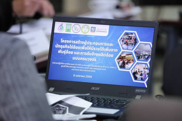 กรุงเทพฯ: 8 มกราคม 2569 – สำนักงานคณะกรรมการอ้อยและน้ำตาลทราย (สอน.) ร่วมกับ หน่วยปฏิบัติการวิจัยเฉพาะทาง ด้านเศรษฐศาสตร์อ้อยและน้ำตาล (ศศน.) ศูนย์วิจัยเศรษฐศาสตร์ประยุกต์ คณะเศรษฐศาสตร์ มหาวิทยาลัยเกษตรศาสตร์ แถลงผลการดำเนินงานโครงการ “สร้างผู้ประกอบการและนักธุรกิจไร่อ้อยเพื่อให้มีรายได้เพิ่มจากพันธุ์อ้อย และการรับจ้างผลิตอ้อยแบบครบวงจร” ผู้ช่วยศาสตราจารย์ ดร.ธนาภรณ์ อธิปัญญากุล ผู้รับผิดชอบหลักในการดำเนินโครงการ รายงานว่า โครงการนี้เป็นการนำร่องที่มุ่งยกระดับเกษตรกรชาวไร่อ้อยจากผู้ผลิตแบบดั้งเดิม สู่การเป็นผู้ประกอบการและนักธุรกิจไร่อ้อยที่มีความรู้ด้านการบริหารจัดการในธุรกิจให้บริการด้านการผลิต เก็บเกี่ยว และขนส่ง ตลอดจนการดำเนินงานในธุรกิจฟาร์มอ้อยอย่างเป็นระบบ สอดรับกับทิศทางการพัฒนาอุตสาหกรรมของประเทศในระยะยาว