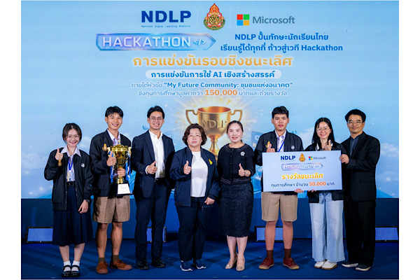 กรุงเทพฯ – 21 เมษายน 2569 – สำนักงานคณะกรรมการการศึกษาขั้นพื้นฐาน (สพฐ.) ผนึกกำลัง บ. ไมโครซอฟท์ (ประเทศไทย) เดินหน้าเชิงรุก ยกระดับระบบการศึกษาไทยเข้าสู่ยุคใหม่ สร้างโอกาสการเรียนรู้ทักษะดิจิทัลและ AI ให้แก่เยาวชน ผ่านแพลตฟอร์มการศึกษาระดับชาติ หรือ National Digital Learning Platform (NDLP) คิกออฟโปรเจ็คท์แรกอย่างเป็นรูปธรรม จัดการแข่งขัน AI Hackathon ภายใต้หัวข้อ “My Future Community – ชุมชนแห่งอนาคต” ชิงทุนการศึกษากว่า 150,000 บาท ซึ่งถือเป็นก้าวแรกของความร่วมมือ โดยมุ่งเปิดโอกาสให้นักเรียนระดับมัธยมศึกษาตอนปลายจาก 1,018 โรงเรียนนำร่อง ทั่วประเทศที่ใช้แพลตฟอร์ม NDLP ได้นำทักษะ AI ระดับโลกมาคิดค้นแนวทางแก้ไขปัญหาจริงในชุมชนของตนเอง และคัดเลือกจนเหลือ 8 ทีมสุดท้ายเข้าสู่รอบชิงชนะเลิศ เพื่อพัฒนาทักษะการคิดวิเคราะห์ การแก้ปัญหาเชิงสร้างสรรค์ใน Hackathon Workshop เรียนรู้ในการสร้าง pitch deck ไอเดียการแก้ไขปัญหาและสร้าง Smart Community รวมถึงได้รับคำแนะนำจากผู้เชี่ยวชาญอย่างใกล้ชิดก่อนถึงวันแข่งขันรอบชิงชนะเลิศ โดย สพฐ.และไมโครซอฟท์ ตั้งเป้าผลักดันให้เกิดการเรียนรู้ดิจิทัลและ AI ทั่วประเทศ ด้วยแผนขยายการเข้าถึงไปยังโรงเรียนในสังกัด สพฐ. ให้ครอบคลุมทั้งหมดกว่า 29,000 โรงเรียนให้ได้ภายในปลายปี 2569 เพื่อให้เยาวชนไทยทุกคน ไม่ว่าจะอยู่ที่ใด มีโอกาสเท่าเทียมกันในการเรียนรู้และสร้างสรรค์ด้วย AI