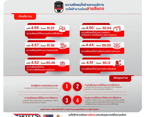 นายสุเทพ พันธุ์เพ็ง กรรมการผู้อำนวยการใหญ่ บริษัท รถไฟฟ้า ร.ฟ.ท. จำกัด (รฟฟท.) ผู้ให้บริการรถไฟฟ้าชานเมืองสายสีแดง เปิดเผยว่า บริษัทฯ ให้ความสำคัญอย่างยิ่งกับความคิดเห็นของผู้ใช้บริการ เนื่องจากเป็นข้อมูลสำคัญในการนำมาปรับปรุงพัฒนาการให้บริการ เพื่อตอบโจทย์ความต้องการของประชาชนให้ได้มากที่สุด โดยการสำรวจความพึงพอใจในครั้งนี้ นับเป็นการสำรวจครั้งที่ 1 ประจำปี 2569 มีการลงพื้นที่สำรวจทั้งในเชิงคุณภาพและเชิงปริมาณ ร่วมจัดทำขึ้นโดยสถาบันบัณฑิตพัฒนบริหารศาสตร์ (นิด้าโพล) ซึ่งเป็นสถาบันที่มีความความเชี่ยวชาญด้านงานวิจัยเชิงคุณภาพมาอย่างยาวนาน และบริษัท รีเสิร์ช ดีไซน์ ซึ่งเป็นหน่วยงานที่มีความเชี่ยวชาญด้านการออกแบบการสำรวจและงานวิจัยเช่นเดียวกัน โดยได้ทำการเก็บข้อมูลจากผู้ใช้บริการในทุกสถานี ผลปรากฏว่า ผู้ใช้บริการมีระดับความพึงพอใจในด้านต่างๆ จากคะแนนเต็ม 5 ดังนี้